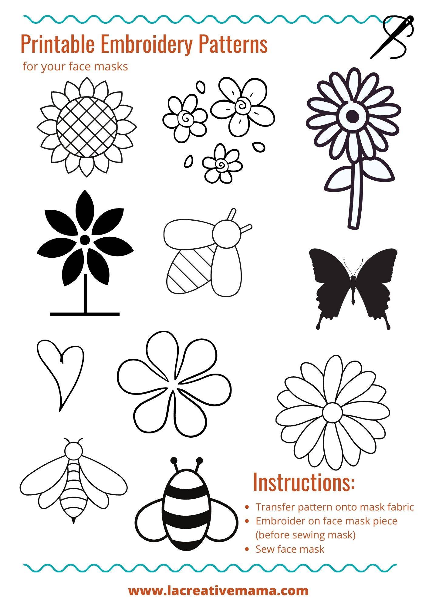 Face Mask Embroidery Pattern - 3 - Check these out on etsy.. This free face mask pattern features a removable filter pocket so you can change the filter and wash the mask. See how to sew a button on pants, add a button to a shirt, or anywhere else. If you prefer to download separate sizes here are the links. See more ideas about embroidery designs, felt mask, embroidery. Download the pattern for our large size reusable cloth face mask here.